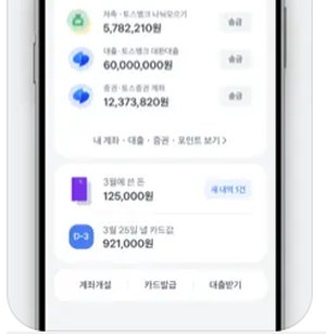 토스앱을 통해 자신의 모든 금융 정보를 한 곳에서 관리할 수 있습니다. 예금, 청약, 증권, 대출 계좌 정보들을 따로 확인할 필요 없이, 토스앱에서 한 번에 확인할 수 있죠. 매달 얼마를 벌고 썼는지 소비 분석 리포트를 제공받으며, 카드 실적도 한눈에 관리할 수 있어 편리합니다. 토스앱을 설치하고 나면 여러 은행 앱을 번갈아 사용할 필요 없이 모든 정보를 한눈에 파악할 수 있습니다.