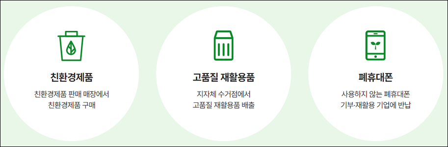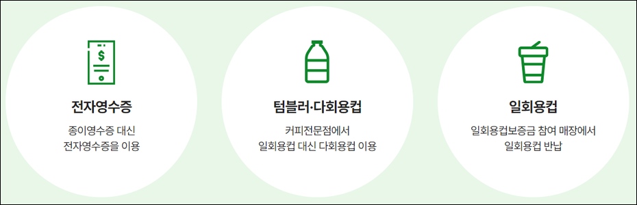 - 녹색생활 실천 활동: 전자영수증 발급, 텀블러 대여용기 사용, 일회용품 반납 등의 활동을 일상 속에서 실천합니다. 이러한 활동들은 가정에서도, 외출 중에도 손쉽게 실천할 수 있는 것들로 구성되어 있습니다.
