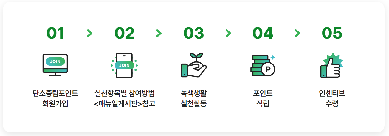 탄소중립 실천포인트제에 참여하는 방법은 매우 간단합니다. 아래 단계를 참고하여 쉽게 가입하고 실천 활동을 시작해보세요.