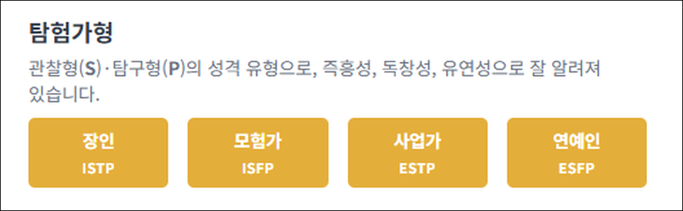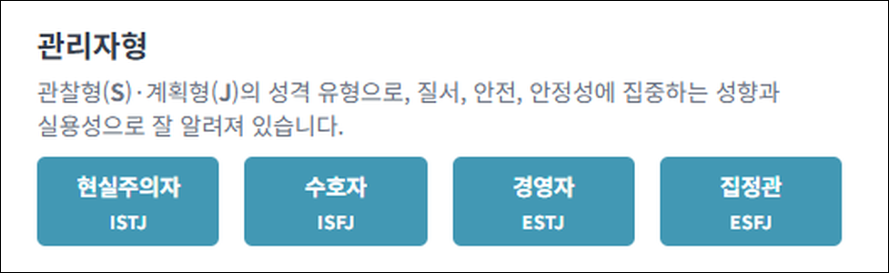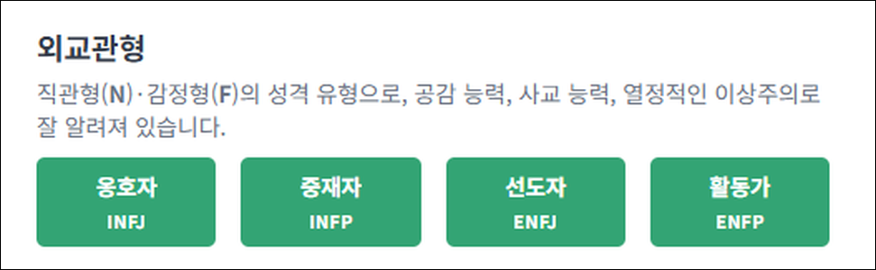 mbti 무료 검사 사이트에서 제공하는 16가지 성격유형은 다음과 같이 구분됩니다.